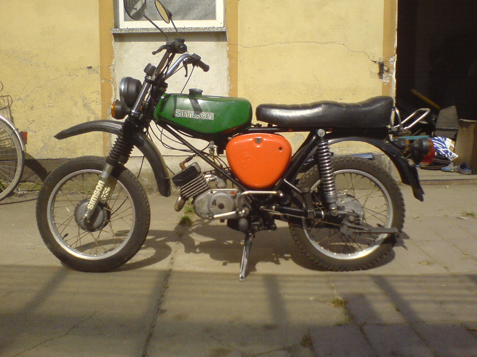 Cpl.Basti 1488 Melden Geschrieben 7. Juni 2008 Vor 2 Wochen aus Berlin abgeholt. Hat 60ccm 2-Kanal. ORIGINAL Enduro. Allerdings kommt nochn Bissl was ran -2 neue Reifen (2.75-16 Vee Rubber) -neue Sitzbank -Typenschild S51 Aluminiumplakete ( das Alte Typenschild is verloren gegangen) -Gitter für Scheinwerfer -neuer Fußrastenträger (schwarz) -neuer Tank + neue Seitendeckel (grundiert) -Aufkleber "Simson" + "S51 Enduro" (weiß) -Drehzahlmesser Komplettset -BFV 19N1-11 Vergaßer 19mm² -60ccm 4-Kanal Motor Set (Koben + Zylinder + Zylinderkopf) -Neue Lackierung. Habe aber keine Ahnung welche Lackierung. Sitz auch grade an einer 2D-Zeichnung, evtl Bringt die mir was... EDIT: So, 1,5H Arbeit rum, sowit isses jetz. Ich denk mal ich werds so lassen.
