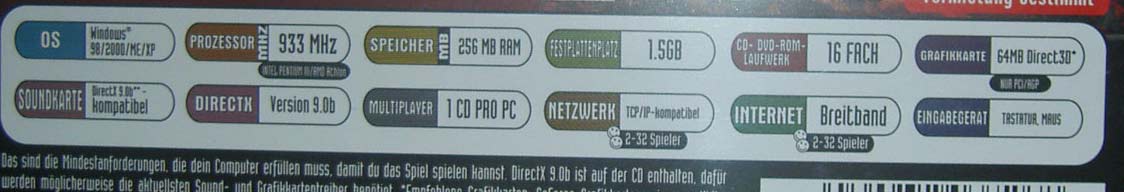 die hardware naja ich kann nur eins sagen das spiel ist auf meinen inet rechner installiert (2ghz 512mb "sdram"!!! und ner gf4ti) und eigentlich läufts bei mir ruckelfrei und wirklich gut spielbar auf 1024er auflösung und32bit die ladezeiten halten sich auch in grenzen