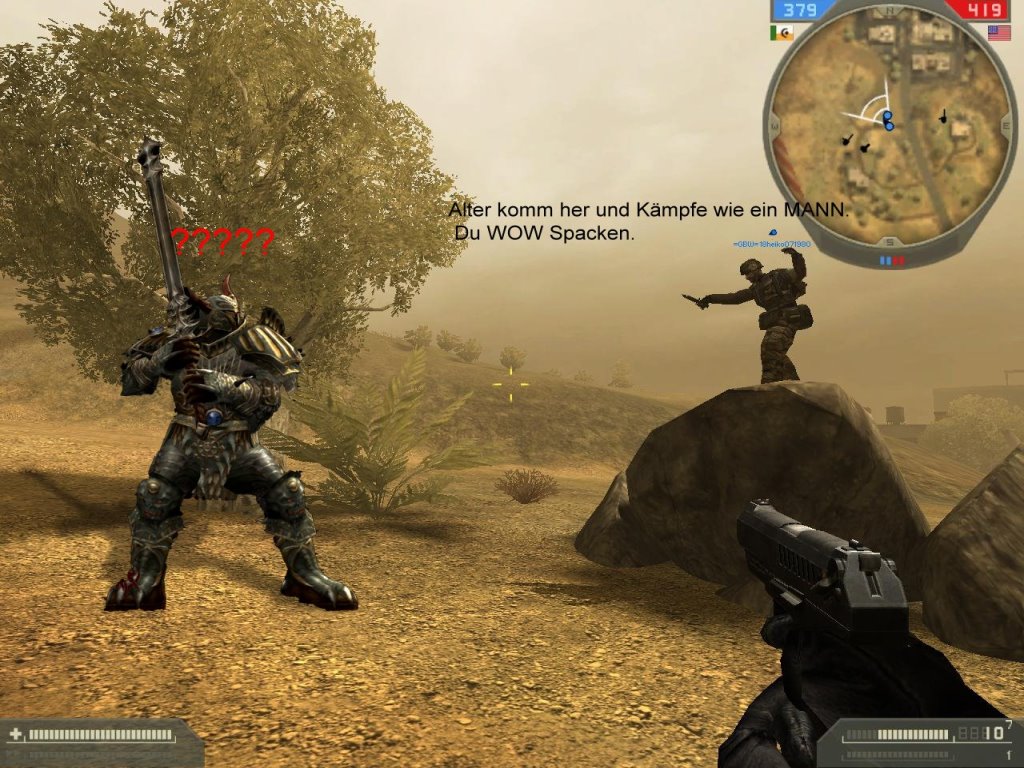 So stelle ich mir das vor, wenn sich mal einer von den WOW Spacken auf ein BF2 Server verlaufen würde.